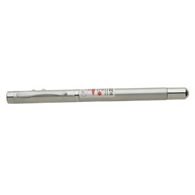 Powerful laser pointer with telescoping pointer and ballpoint pen in attractive brushed silver ginish with chrome accents. Comfortable design & durable construction. Screw-Off tip for convenient ballpoint pen.